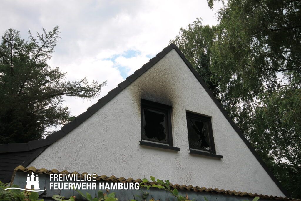In der Straße Grootmoortwiete brannte der Dachstuhl eines Einfamilienhauses. Bei Ankunft der ersten Einsatzkräfte wurde eine starke Rauchentwicklung im Dachbereich festgestellt und sofort ein C-Rohr im Innenangriff vorbereitet. Ein weiterer Trupp übernahm mit einem B-Rohr eine Riegelstellung für die Nachbargebäude. Im Verlauf ging ein zweiter Trupp mit einem weiteren C-Rohr ebenfalls zur Brandbekämpfung ins Dach vor.