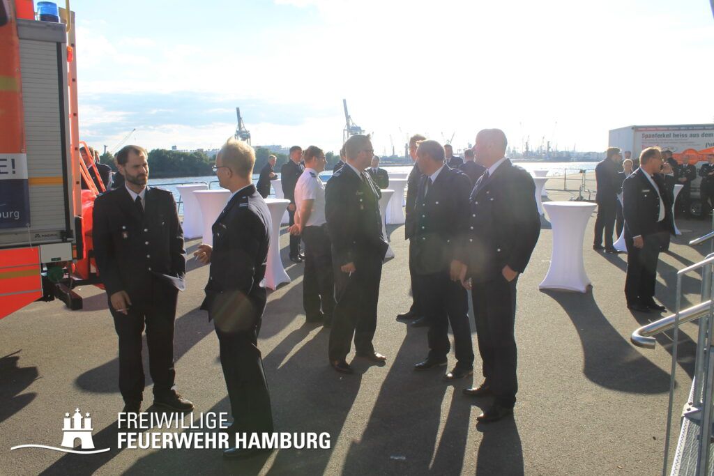 Der Musikzug der FF Fischbek rundete die gelungene Veranstaltung musikalisch ab und begleitete am Ende der Veranstaltung die unverzichtbare Hamburg Hymne Hammonia. Im Anschluss nutzten viele Gäste die Möglichkeit, sich mit Blick auf den Sonnenuntergang an der Elbe bei einem üppigen Buffet auszutauschen. An diesem Abend konnten alte Kameradschaft und Freundschaft endlich wieder gepflegt, aber auch neue Kontakte geknüpft werden. Durch die einladende Möglichkeit des Austausches bei der besonderen Location, wurde es unter anderem laut des stellvertretenden Landesbereichsführers und Moderators des Abends Andreas Fick zu „einer der besten Jahreshauptversammlungen“ überhaupt.