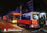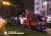 In einer Zimmervermietung war ein Brand ausgebrochen. Eine starke Rauchentwicklung drang aus mehreren Fenstern des Gebäudes. Durch den Flur im 3. OG, in dem sich auch die Brandwohnung befand, verteilte sich schnell der Brandrauch. Mehrere Personen standen bei Eintreffen der Einsatzkräfte an Fenstern, aus dem Rauch drang und teilweise auch Flammen sichtbar waren. Noch auf der Anfahrt gab es eine Adressänderung durch die Leitstelle, da sich die Gebäudefront an der Reeperbahn befand. Der erste Löschzug wurde über die Seilerstraße an das Objekt geschickt, der zweite Löschzug über die Reeperbahn. Auf der Gebäudevorderseite wurden diverse Personen über eine Drehleiter sowie das Treppenhaus gerettet. Auf der Gebäuderückseite wurden ebenfalls Personen gerettet, da eine Drehleiter allerdings nicht aufgestellt werden konnte, passierte die Rettung hier jedoch über tragbare Leitern. Als eine Herausforderung für die Einsatzkräfte stellte sich heraus, dass über die Leitern erst auf ein Vordach bzw. Gebäudedach geklettert werden musste und von da aus die tragbaren Leitern an das betroffene Gebäude gestellt werden konnte. Zu Beginn sprang hier eine Person aus dem 3. OG und verletzte sich dabei schwer am Bein. Insgesamt wurden ca. 45 Personen durch die Feuerwehr gerettet und in einem HVV Bus sowie dem GRTW (Großraumrettungswagen) betreut. Die Nachlöscharbeiten zogen sich ein paar Stunden. Die Freiwillige Feuerwehr unterstützte hier massiv mit Atemschutzgeräteträgern bei der Menschenrettung sowie bei den Löscharbeiten.