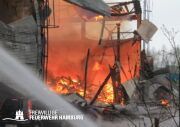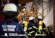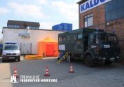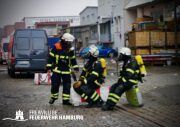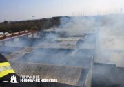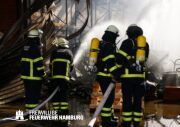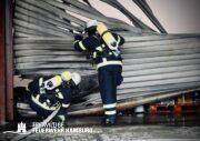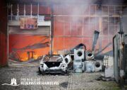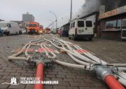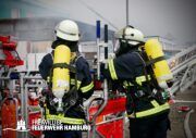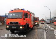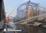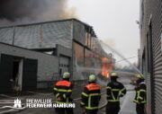 Bei einem Brand mehrerer Lagerhallen und von verschiedensten Waren auf großen Freiflächen in einem Gewerbegebiet kamen neben diversen Löschzügen und Sonderdiensten auch 54 FF und 12 Bereichsführer sowie der Landesbereichsführer der Freiwilligen Feuerwehr Hamburg über mehrere Tage zum Einsatz.