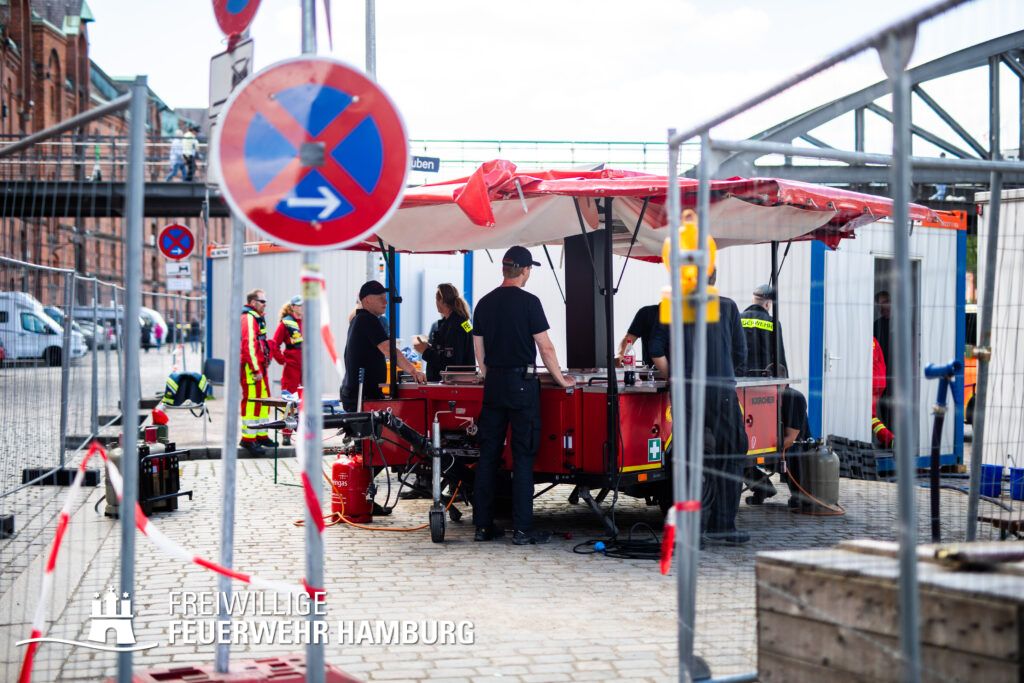 Zusätzlich stellte die Freiwillige Feuerwehr Hamburg die Versorgung mit Kraftstoff für die Kleinboote sowie die Verpflegung der Kameraden sicher. Dazu wurde ein Bereitstellungsraum eingerichtet.