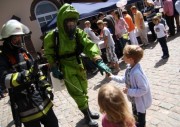 Auf der Leipziger Festwiese zeigte die Berliner Feuerwehr eine Aktion, wie ein Auto mit Hilfe von Wasserkraft angehoben wurde.