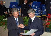 Landesbereichsführer Hermann Jonas zeichnete auf der Jahreshauptversammlung in Sasel Innensenator Udo Nagel mit der Feuerwehrverdienstmedaille aus