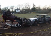 Am Samstag, dem 9. Februar prallten ein Ford Fiesta und Renault R 5 auf offener Straße gegeneinander. Der Renault überschlug sich und blieb auf dem Dach liegen. In beiden Autos wurde der Fahrer eingeklemmt.