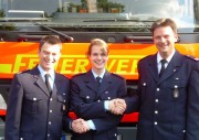 Die Freiwillige Feuerwehr Pöseldorf hat eine neue Jugendfeuerwehrwartvertreterin: Der Wehrführer David Märtig (rechts im Bild1) und Jugendfeuerwehrwart Oliver Mücke (links im Bild1) gratulieren Julia Oester-Barkey.