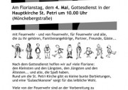 Am Florianstag, dem 4. Mai, Gottesdienst in der Hauptkirche St.Petri (Mönckebergstraße) um 10.00 Uhr. Mit Feuerwehr - und von Feuerwehr, für Feuerwehr und alle, die zu ihr gehören, Familienangehörige, Partner, Freunde, Gäste...