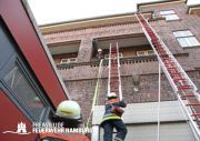 Schläuche ausrollen, Leiter aufstellen und die Leiter hinauf hieß es wieder für die Anwärter und Anwärterinnen der Grundausbildung im Bereich Bergedorf.