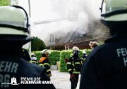 Am Dienstagmittag kam es in einer Doppelhaushälfte in Bramfeld zu einem Feuer. Starker Wind sorgte hier für ein immer wieder anfachen des Feuers. Ein Übergreifen auf die andere Doppelhaushälfte konnte durch das schnelle Handeln der Einsatzkräfte verhindert werden.