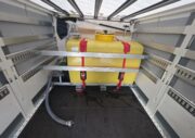 Auf dem Fahrzeug befindet sich ausserdem ein 2000 l Löschwasser fassender Tank aus dem mit einer hydraulischen Pumpe gefördert werden kann.