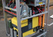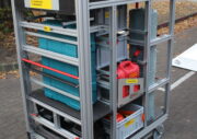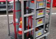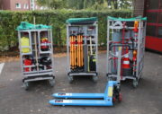 Beladung mit 3 rollbaren Gitterboxen mit Material für die technische Hilfeleistung wie z.B. Pump- und Lenzarbeiten sowie Beleuchtungssaufgaben.