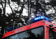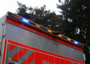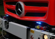 Heckabsicherung mit blauen und gelben LED-Leuchten.