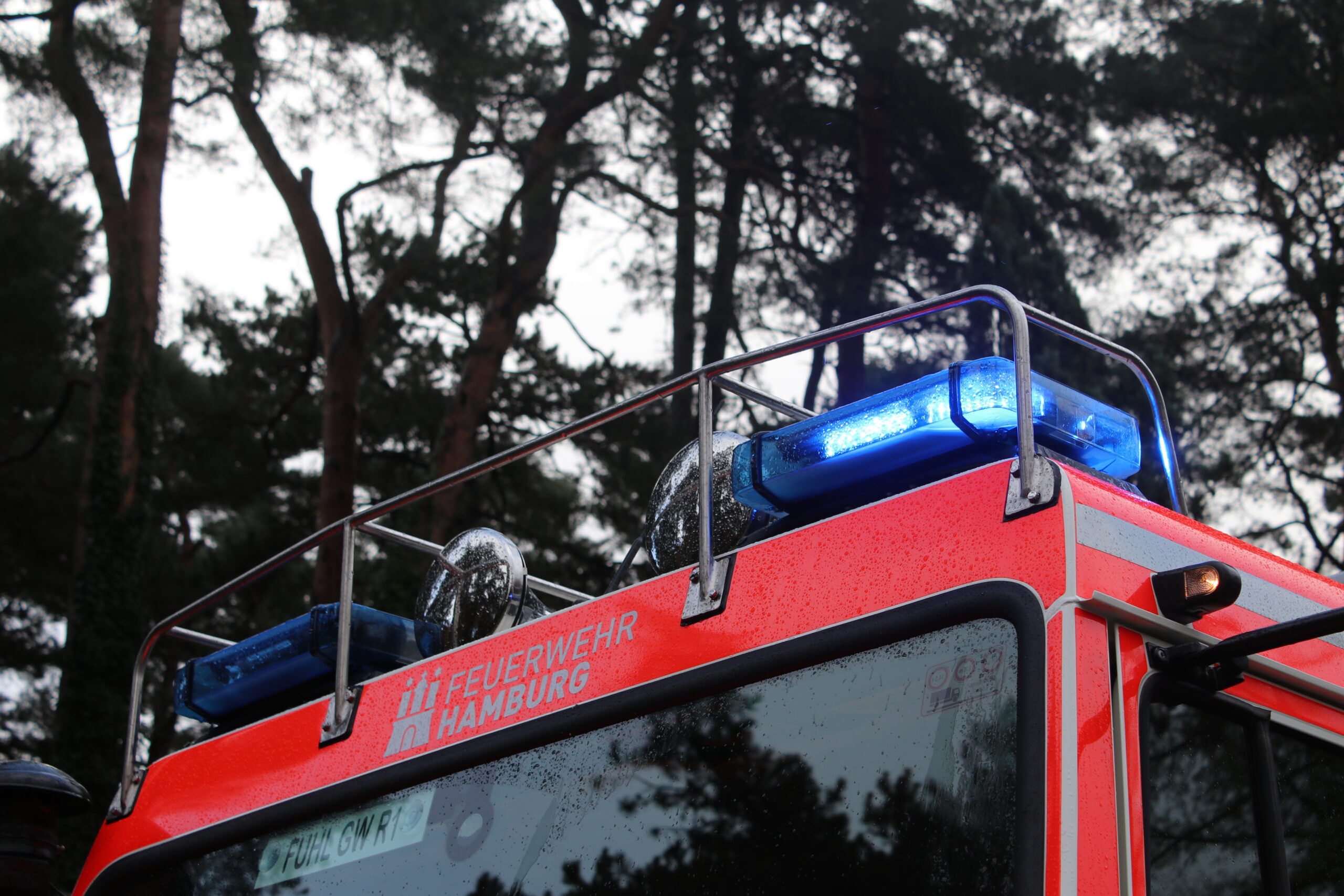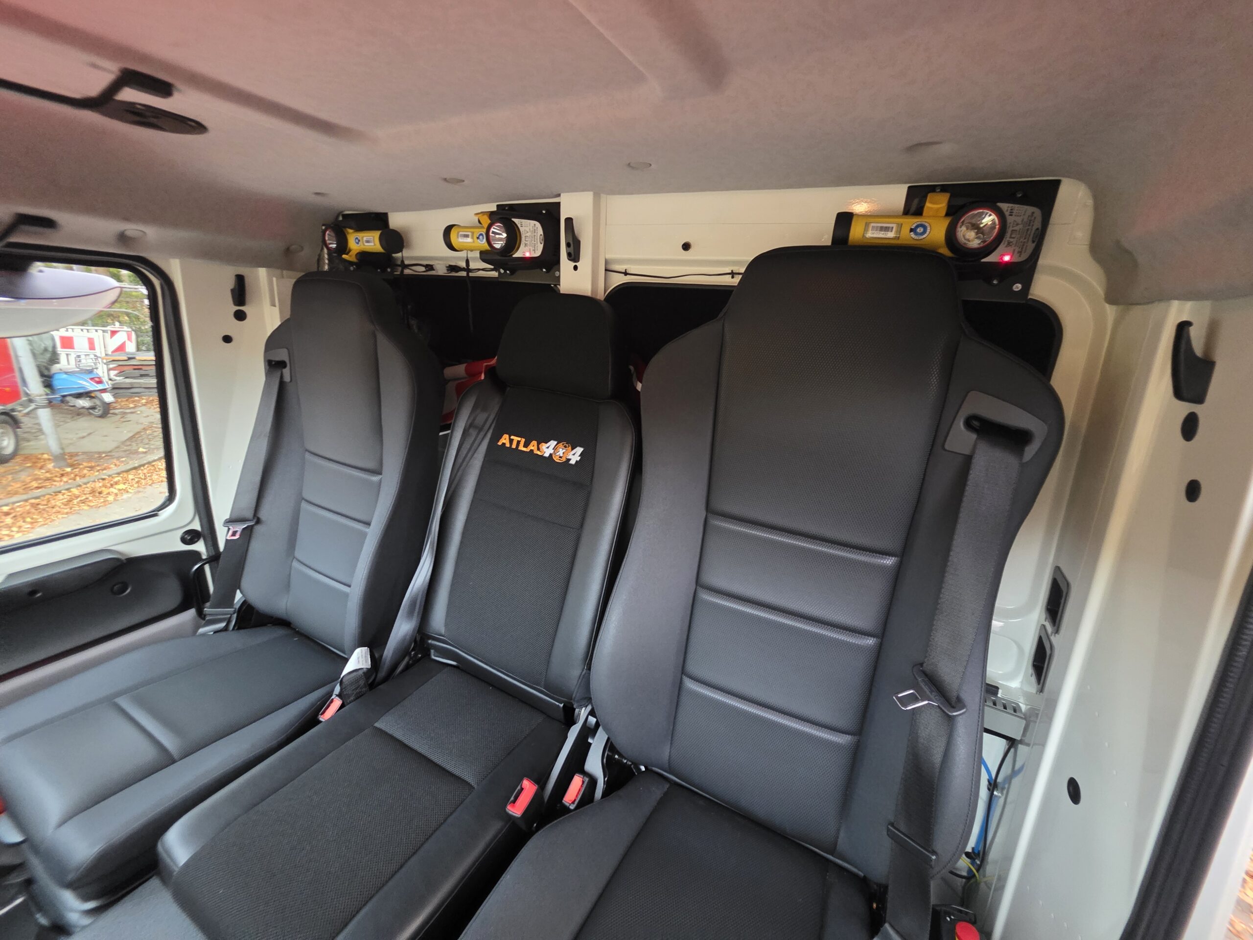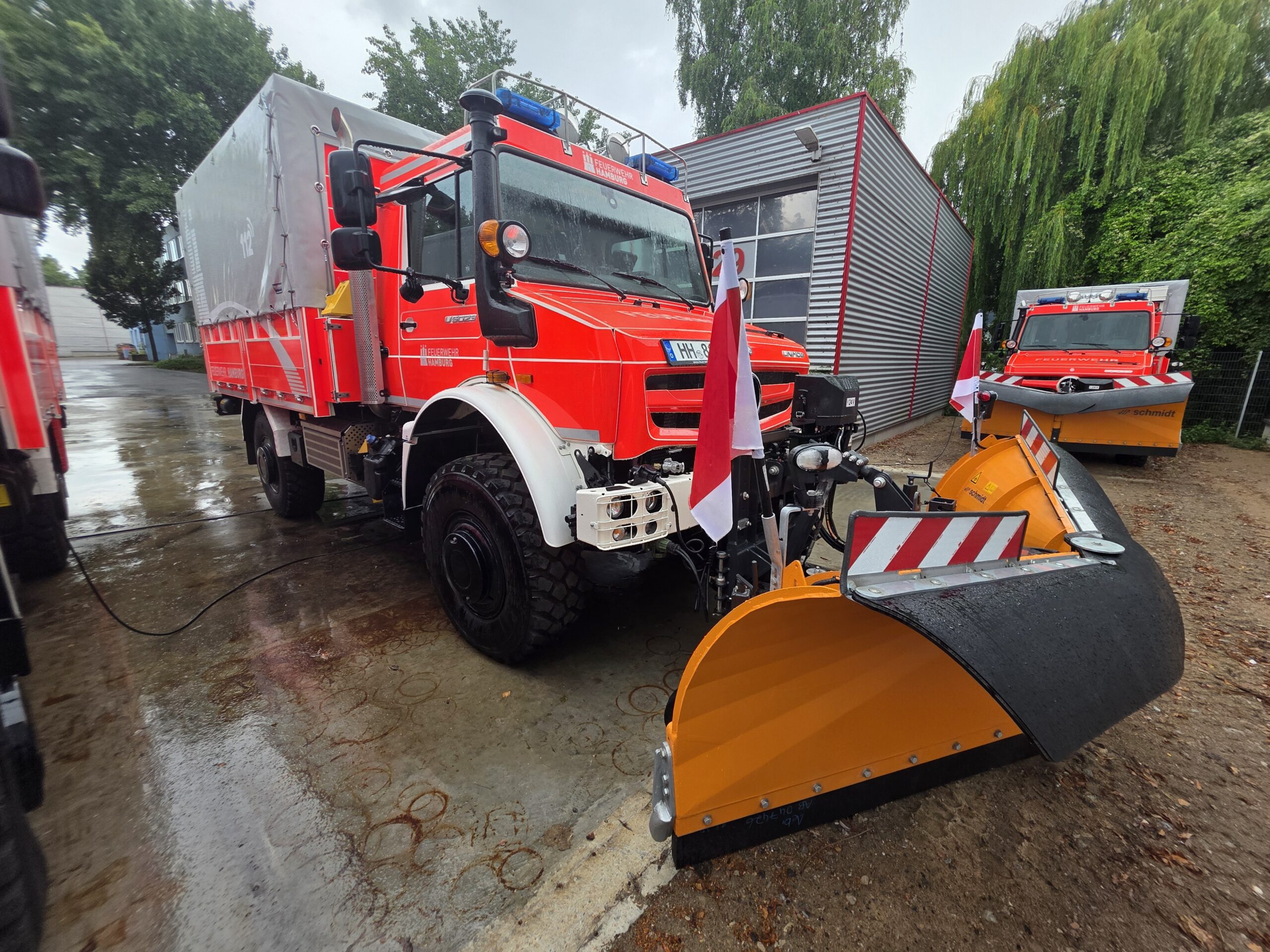 Heckabsicherung mit blauen und gelben LED-Leuchten.