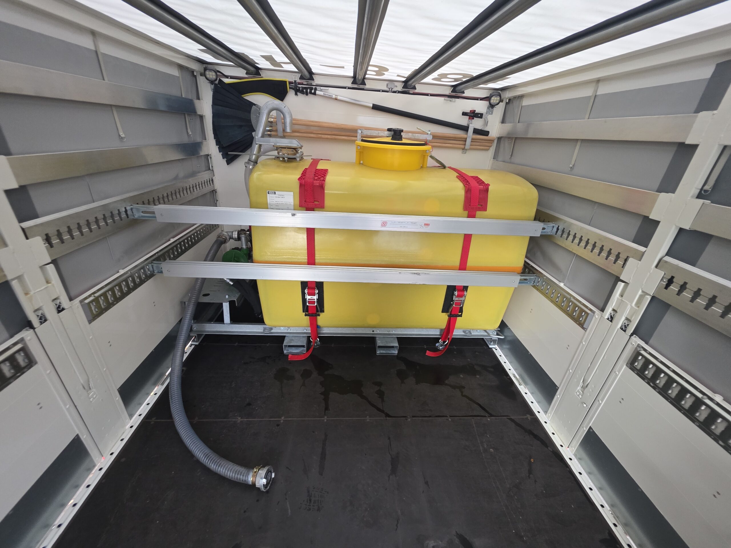 Auf dem Fahrzeug befindet sich ausserdem ein 2000 l Löschwasser fassender Tank aus dem mit einer hydraulischen Pumpe gefördert werden kann.