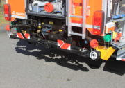 2x Einmann-Schlauchhaspeln: 1x 160 m B-Schlauch (8 Schläuche je 20m) und 1x Verkehrssicherungsgerät, am Fahrzeugheck