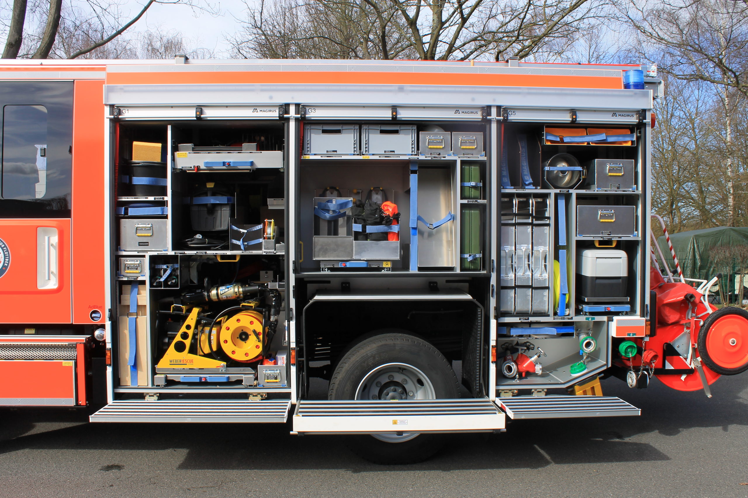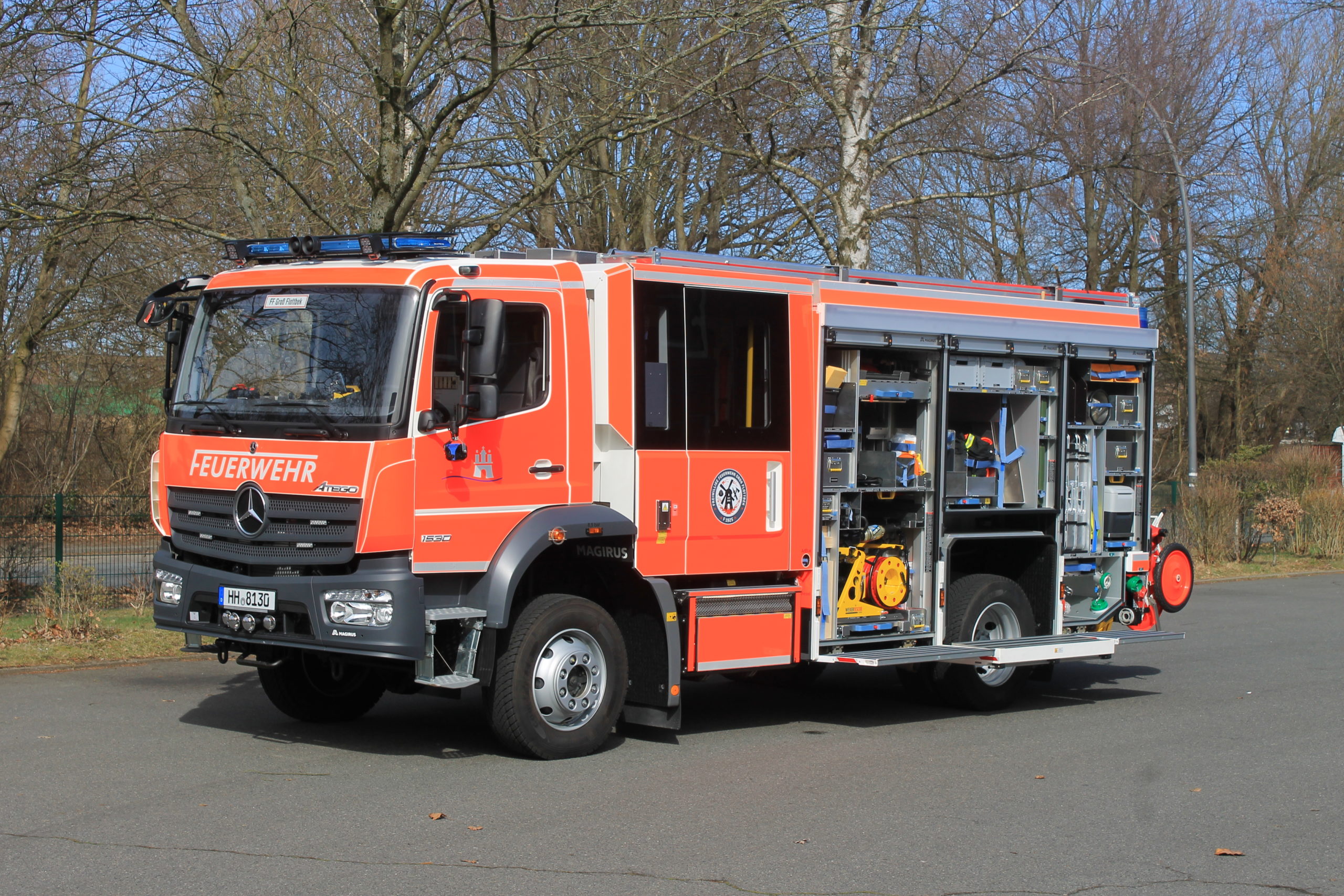 Dieses Fahrzeug kann nicht nur für den Brandschutz eingesetzt werden, sondern auch für die erweiterte technische Hilfeleistung. Die Besatzung besteht aus einer Gruppe von 9 Feuerwehrleuten.