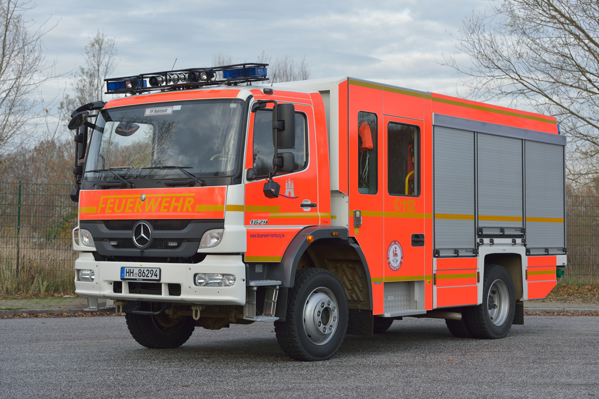 – 7 Fahrzeuge auf Allradfahrgestell 1629 (FF Groß Flottbek, FF Kirchwerder-Nord, FF Kirchwerder-Süd, FF Moorburg, FF Rahlstedt, FF Reitbrook, FF Schnelsen)