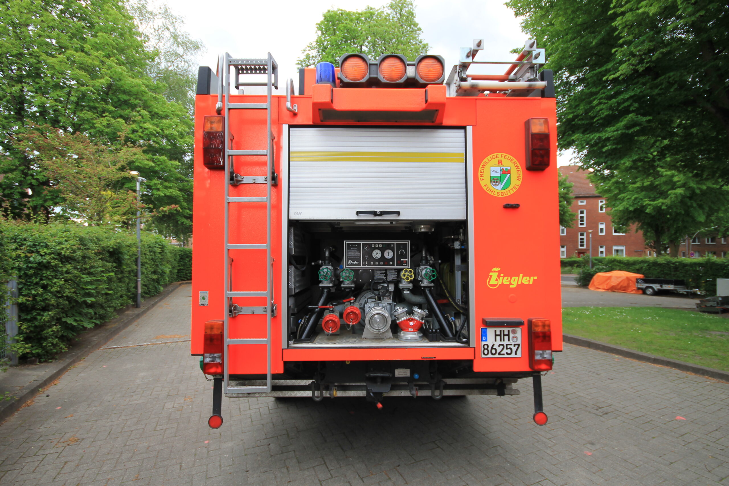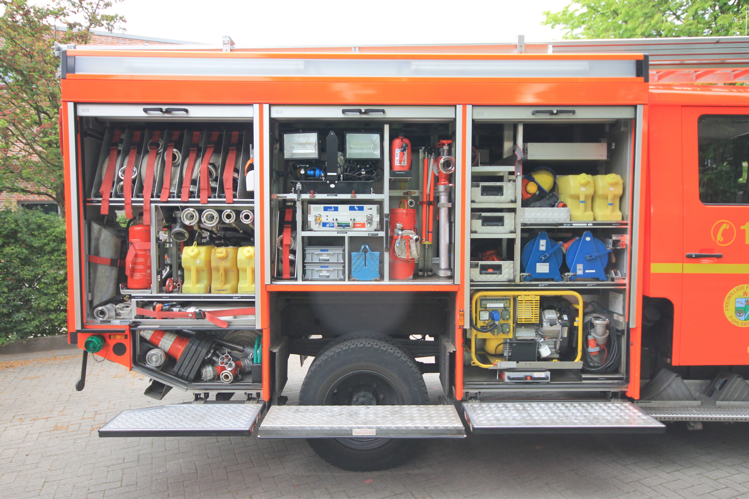 Löschwassertank 1600 l Wasser, insges. 30 B-Schläuche u. 14 C-Schläuche an Bord, Feuerlöschpumpe FPN 10-2000 (2000 l/min. bei 10 bar), Schnellangriff Wasser und Schaum, Schnellangriffsverteiler Wasser und Schaumrohr, TS PFPN 10-1500 (1500 l/min. bei 10 bar), 800 l/min-E-Tauchpumpe, E-Motorsäge, Motorkettensäge, Stromerzeuger 8 KVA, Beleuchtungssatz (Stativ u. 2 x 1000 W), 2 PA-Geräte im Mannschaftsraum gegen die Fahrtrichtung, 2 Reserve-PA, 4 Steckleiterteile, 3-teilige Schiebeleiter, 2 1000 l-Auffangbehälter, offen/faltbar, Erste-Hilfe-Koffer.