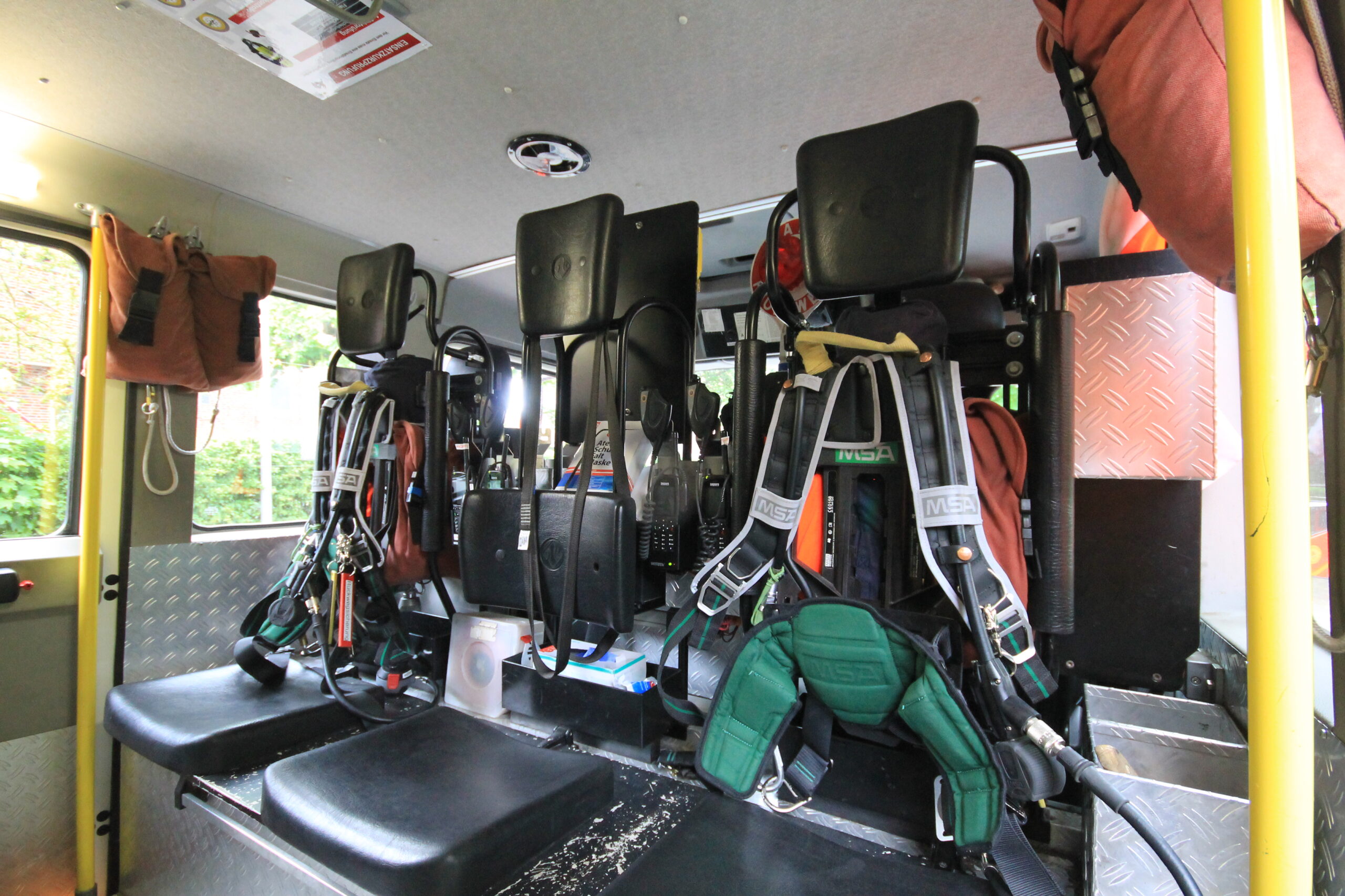 Das Fzg. hat keinen Lichtmast und keine fahrbare Schlauchhaspel. Warnanlage von FG Hänsch mit Martinpressluftfanfaren und elektronischer Warneinrichtung mit Stadt-/Landumschaltung sowie Durchsageverstärker. Frontblitzleuchten (FG Hänsch) und 3. Kennleuchte am Heck (Bosch) zusammen mit einem elektronischem Tri-Blitz zur Heckabsicherung.