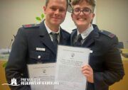 Im Anschluss an die Bezirksversammlung erfolgte die Ehrung von 2 Kameraden:in aus der FF Eimsbüttel.