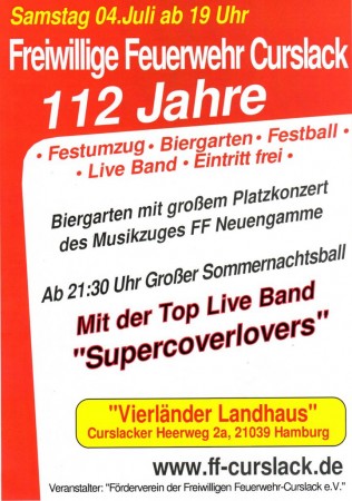 Am 4. Juli 2015 feiern wir 112 Jahre FF Curslack im Vierländer Landhaus, seid dabei!!!