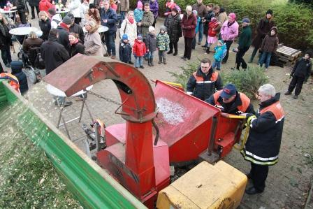 Für eine kleine Spende zugunsten des Jugendwerkes unfallgeschädigter Kinder, kann der alte Baum geschreddert werden.