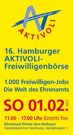 Die Freiwillige Feuerwehr Hamburg ist zum 2. Mal, am 01. Februar 2015, auf der AKTIVOLI-Freiwilligenbörse, in der Handelskammer Hamburg vertreten. Hier haben Bürger eine einmalige Möglichkeit sich über die Vielfalt des bürgerschaftlichen Engagements in Hamburg zu informieren. Die AKTIVOLI-Freiwilligenbörse hat das Ziel interessierte Menschen und gemeinnützige Projekte aus den Bereichen Soziales, Kultur oder Umweltschutz zusammen zu bringen. Im Jahr 2014 konnten an unserem Stand sehr vielen, an der Freiwilligen Feuerwehr Interessierten Bürgern, ihre Fragen beantwortet werden.