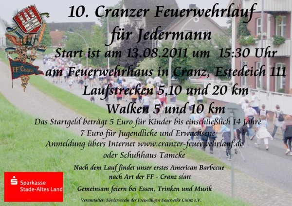 Am Samstag, dem 13. August 2011, findet der schon seit vielen Jahren beliebte Cranzer Feuerwehrlauf statt.