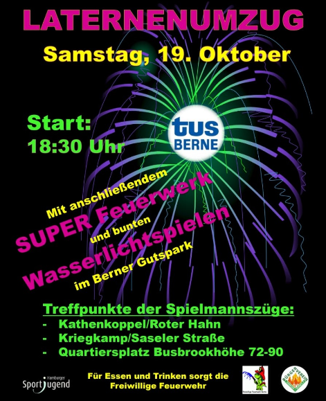 Die Temperaturen sinken, die Tage werden wieder kürzer, der Herbst ist da. Und wie in jedem Jahr, wollen wir wieder mit unseren Laternen durch ein bunt geschmücktes Berne ziehen.