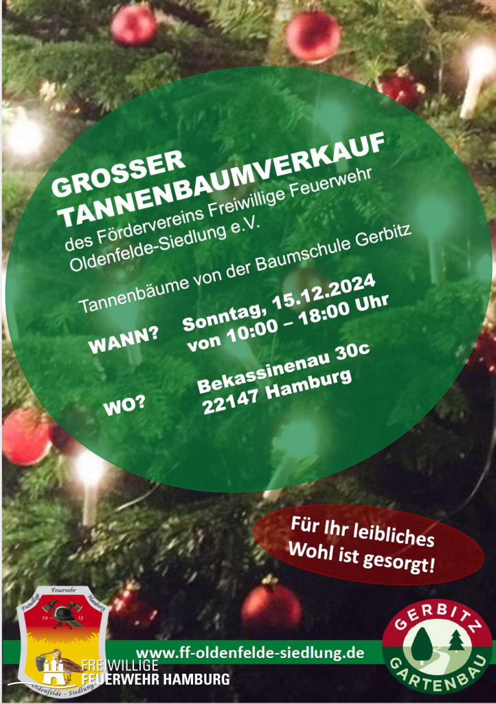 Auch in diesem Jahr freuen wir uns, dass der Förderverein der Freiwilligen Feuerwehr Oldenfelde-Siedlung e.V.  wieder den großen traditionellen Tannenbaumverkauf veranstaltet.