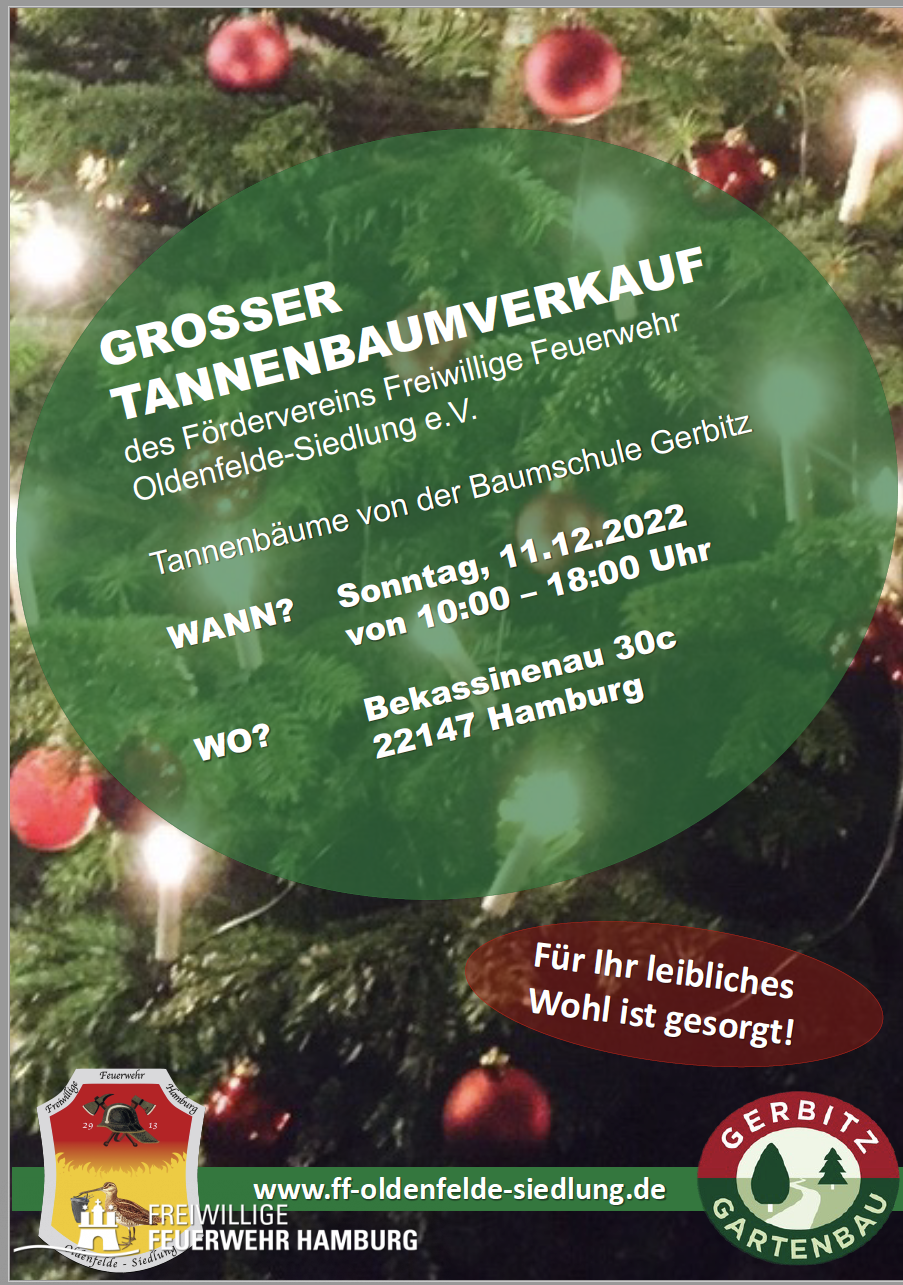Auch in diesem Jahr freuen wir uns, dass der Förderverein der Freiwilligen Feuerwehr Oldenfelde-Siedlung e.V.  wieder den großen traditionellen Tannenbaumverkauf veranstaltet.