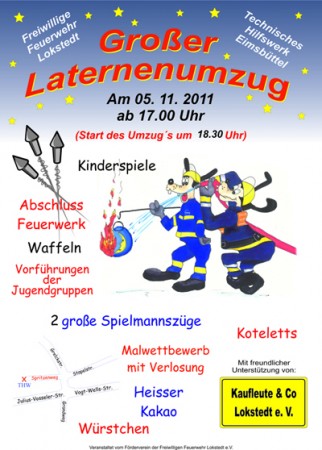 Die Freiwillige Feuerwehr Lokstedt und das THW Eimsbüttel richten am 05.11.2011 den „Großen Laternenumzug“ aus.