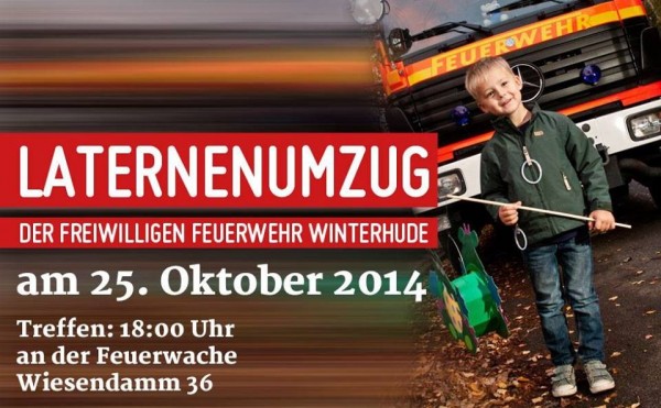 Am Samstag, den 25.10.2014 ab 18:00 Uhr ist wieder Treffpunkt zum Laternenumzug bei der Freiwilligen Feuerwehr Winterhude am Wiesendamm 36.