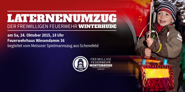 Am 24.10.2015 ab 18:00Uhr ist es wieder so weit, die Freiwillige Feuerwehr Winterhude lädt zu ihrem großen Herbstereignis, den Laternenumzug ein. Am Samstag, den 24.10.2015 ab 18:00Uhr ist wieder Treffpunkt bei der Freiwilligen Feuerwehr Winterhude am Wiesendamm 36 zum Laternenumzug. Für das leibliche Wohl werden Waffeln, Würstchen und Getränke angeboten. Mit musikalischer Unterstützung des Meissner Spielmannzugs aus Schenefeld führt der Umzug durch die Straßen von Winterhude. Alle kleinen und großen Kinder sind mit Eltern, Großeltern, Verwandten und Bekannten recht herzlich zu dem Laternenumzug eingeladen.