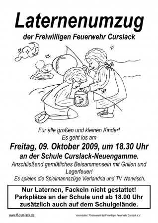 Am 9. Oktober 2009 findet unser alljährlicher Laternenumzug statt mit 2 Spielmannszügen. Beginn ist um 18.30 Uhr an der Zentralschule Curslack.