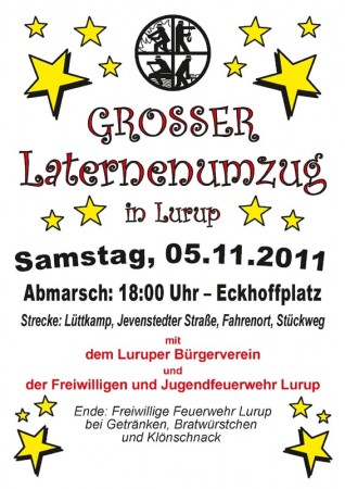 Dann findet der jährliche Laternenumzug der FF Lurup zusammen mit dem Bürgerverein Lurup und der Jugendfeuerwehr Lurup statt.