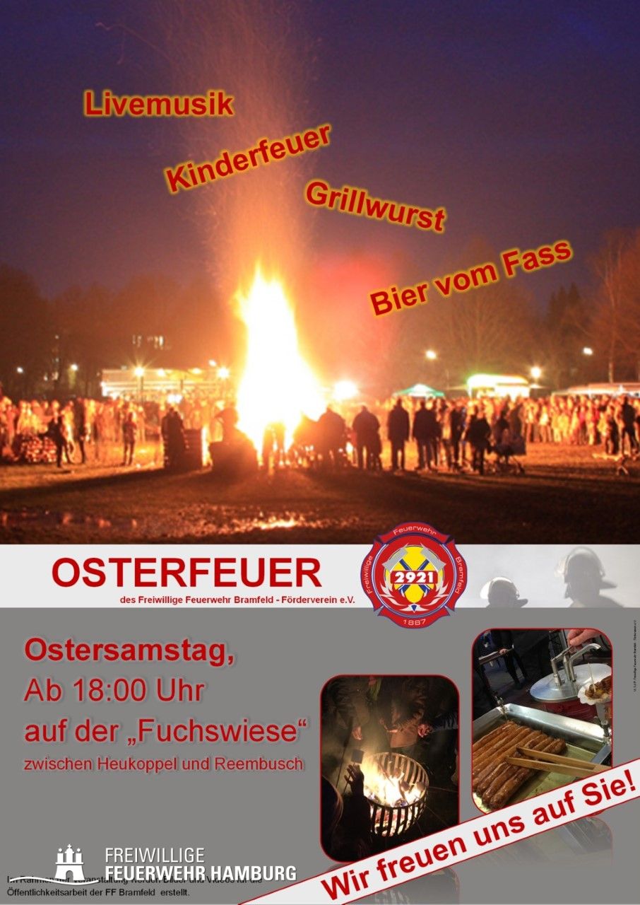 Die Freiwillige Feuerwehr Bramfeld würde sich freuen, Sie und Ihre Familien am Ostersamstag, den 20.04 Willkommen heißen zu dürfen.