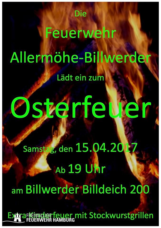 Die Freiwillige Feuerwehr Allermöhe-Billwerder lädt zum traditionellen Osterfeuer ein. Auch für die Kleinen gibt es extra ein Kinderosterfeuer mit Stockwurstgrillen!