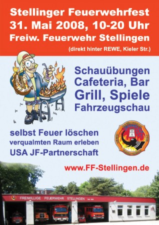 Am 26.05.2007 begrüßt die FF Stellingen klein und GROß von 10-20 Uhr auf dem Wachhof und im Feuerwehrhaus (Melanchthonstr. 10) mit diversen Programmpunkten: Neben der traditionellen Fahrzeugschau, Einsatzübungen und Wasserspielen für Kinder geht es in diesem Jahr besonders heiß her: Neben der einzigartigen Möglichkeit, selbst einmal zu versuchen, wie verschiedene Feuer gelöscht werden können, gibt es ein weiteres Highlight:
