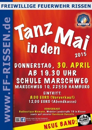Erneut lädt die FF Rissen alle Tanz- und Feierwütigen zum Tanz in den Mai in die Schule Marschweg ein. Für Unterhaltung sorgt eine neue Band und natürlich gibt es auch Essen und Trinken.