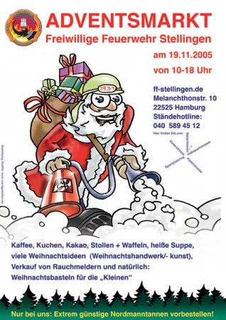 Bereits zum fünften Mal findet am 19.11.2004 von 10-18 Uhr im Feuerwehrhaus der FF Stellingen in der Melanchthonstr. 10 der traditionelle Adventsmarkt statt.
