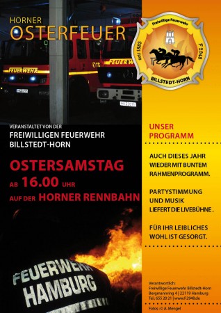 In diesem Jahr veranstaltet die Freiw. Feuerwehr Billstedt-Horn wieder ihr traditionelles Osterfeuer auf dem Freizeitgelände der Horner Rennbahn.