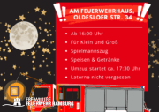 Ab 16:00 Uhr – Beginn am Feuerwehrhaus Ca. 17:30 Uhr – Laternenumzug mit Spielmannzug