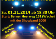 GROSSER LATERNENUMZUG der Freiwilligen Feuerwehr Farmsen Samstag ∙ 01. November 2014 ab 18:30 Uhr Start an der Farmsener Feuerwache am Berner Heerweg 151 mit der Showband 2000 Streckenverlauf: Feuerwache / Eggersweide / Pulverhofsweg / Eckerkoppel / Buchnerweg / Karstenskoppel / Feuerwache