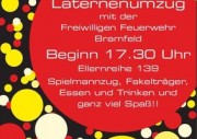 Am 29.10.2011 ist es wieder soweit, der nun schon alljährlich bekannte Laternenumzug der FF Bramfeld findet statt. Alles weiter ist auf dem Plakat/Bild zu entnehmen.