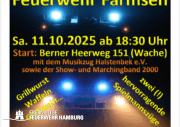 GROSSER LATERNENUMZUG der Freiwilligen Feuerwehr Farmsen Samstag ∙ 11. Oktober 2025 ab 18:30 Uhr Start an der Farmsener Feuerwache am Berner Heerweg 151 mit der Show- und Marchingband 2000, sowie dem Musikzug Halstenbek Streckenverlauf: Feuerwache / Eggersweide / Pulverhofsweg / Eckerkoppel / Buchnerweg / Karstenskoppel / Feuerwache Für Ihr leibliches Wohl wird unter anderem mit […]
