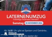 Die FF Bergstedt lädt gemeinsam mit der Kirche und dem Heimatring zum großen Laternenumzug ein. Start ist am 6. November 2023 um 16:30 Uhr an der Bergstedter Kirche.