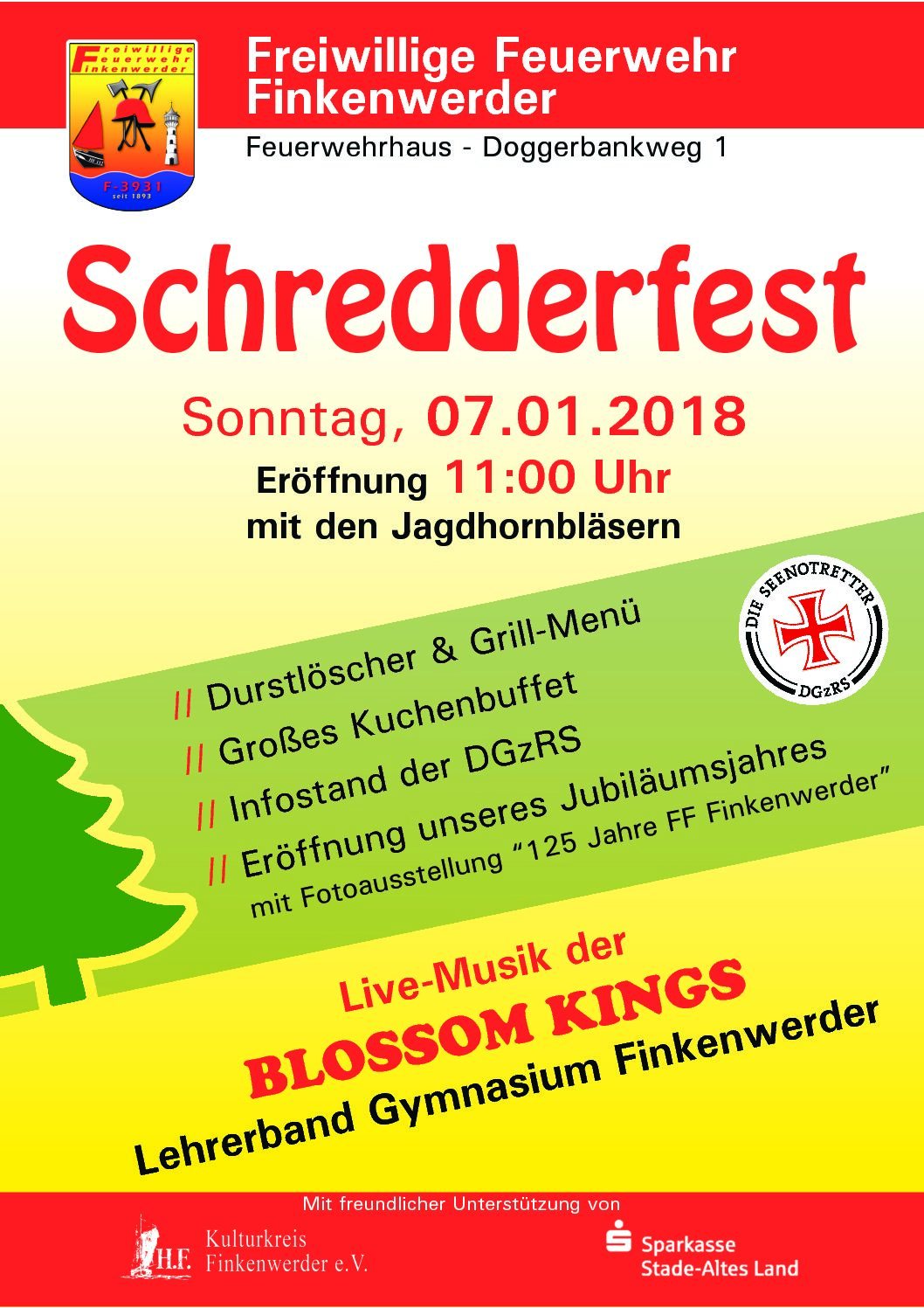 Die Kameradinnen und Kameraden der FF Finkenwerder laden am 11.01.2015 wieder zum traditionellen Schredderfest am Feuerwehrhaus im Doggerbankweg 1 ein. Ab 10:30 Uhr können ausgediehnte Weihnachtsbäume für eine kleine Spende an die Deutsche Gesellschaft zur Rettung Schiffbrüchiger geschreddert werden. Die auf Finkenwerder mittlerweile als inoffizieller „Neujahrsempfang“ betitelte Veranstaltung wird um 11:00 Uhr durch die Jagdhornbläser-Gruppe eröffnet. […]
