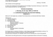 Am 22.09.2009 findet ab 19:00 Uhr an der Landesfeuerwehrschule in der Bredowstrasse 4 die jährliche Vertreterversammlung der Erholungsfürsorge der Freiwilligen Feuerwehr Hamburg statt. Das Programm kann der beigefügten Grafik entnommen werden.