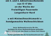 In diesem Jahr veranstaltet die Freiwillige Feuerwehr Langenhorn Nord, an 2 Wochenenden einen Weihnachtsbaumverkauf am Feuerwehrhaus. Am 8- und 9. Dezember sowie am 15- und 16. Dezember, können sie einen passenden Baum beim Förderverein der Feuerwehr erwerben. Für das leibliche Wohl mit heißen- und kalten Getränke sowie kleinen Snacks ist gesorgt.